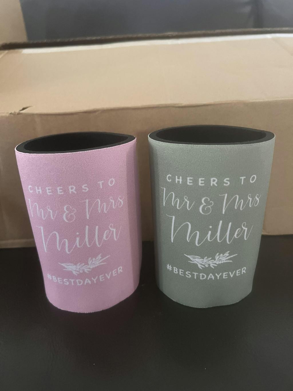 We love catering to parties and gatherings of all sizes, so no need to worry about a minimum order requirement! Whether you're having a small get-together or a big wedding celebration, we've got you covered. For our party and wedding stubby holders, the minimum order requirement is just 2, so even if you're eloping, you can still cheers with some awesome stubby holders!